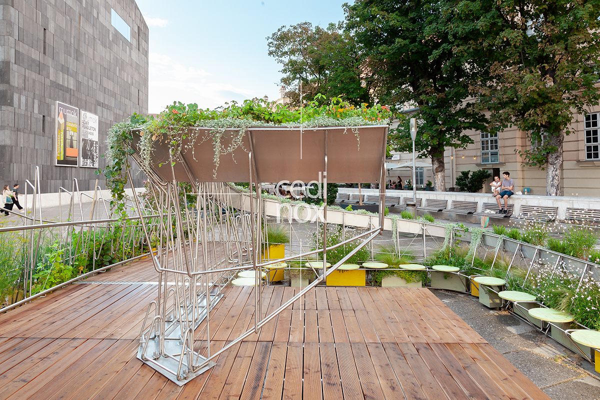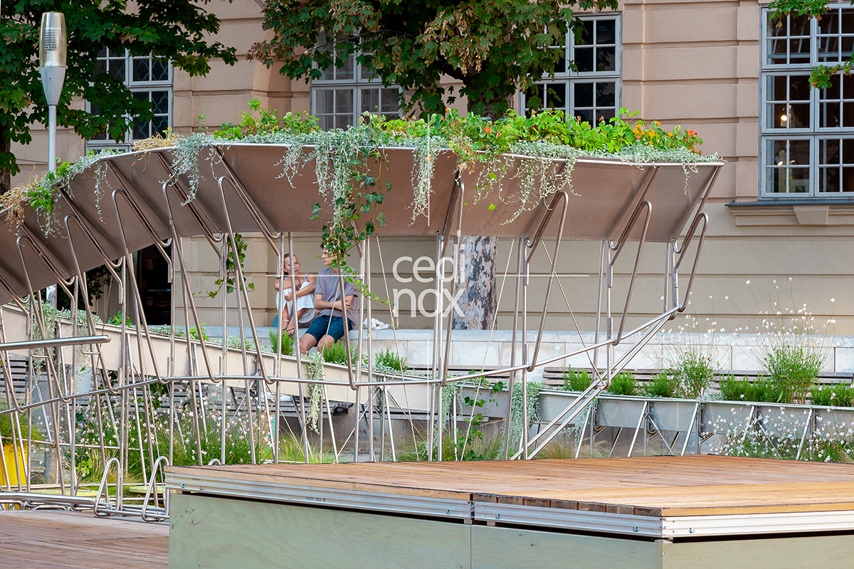 MQ Summerstage representa una manera de abordar el cambio climático en las áreas urbanas, y lo hace de manera intachable. Ha sido diseñado con el objetivo de lograr durabilidad y adaptabilidad, combinando un esqueleto de acero inoxidable ligero con elementos de madera. Logran con éxito crear un impacto positivo duradero, con recursos limitados, mediante un diseño modular y la cuidadosa elección de materiales.
